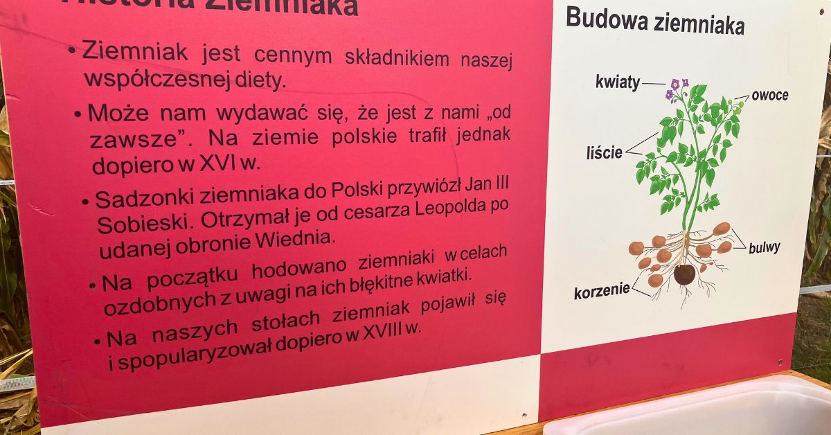 Podczas wydarzenia można było nie tylko dobrze zjeść, ale także poznać historię ziemniaka. Obok pola poustawiano dawne kopaczki do wybierania ziemniaków (podłączane do zaprzęgu konnego), a na polu z ziemniakami – maszynę do oczyszczania pyr z ziemi. Żeby z niej skorzystać, trzeba było umieścić pyrki w wielkim, ażurowym bębnie i zakręcić korbką. Dla dzieciaków to była frajda.