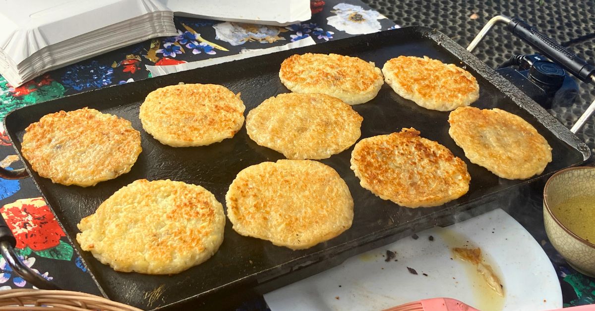 Dla mnie dużą ciekawostką na festiwalu był wielkopolski bambrzok – rodzaj babki ziemniaczanej z tartych ziemniaków z dużą ilością majeranku. Pracownicy muzeum przygotowali dwie wersje – z boczkiem i suszoną gruszką. Dawniej nie w każdym gospodarstwie było mięso, więc do ziemniaków wrzucano to, co było dostępne, a w wielu domach zawsze był zapas suszonych owoców. Pamięcią o potrawie zaopiekował się regionalista, Witold Wróbel, dzięki któremu bambrzok został wpisany na listę produktów tradycyjnych województwa wielkopolskiego.